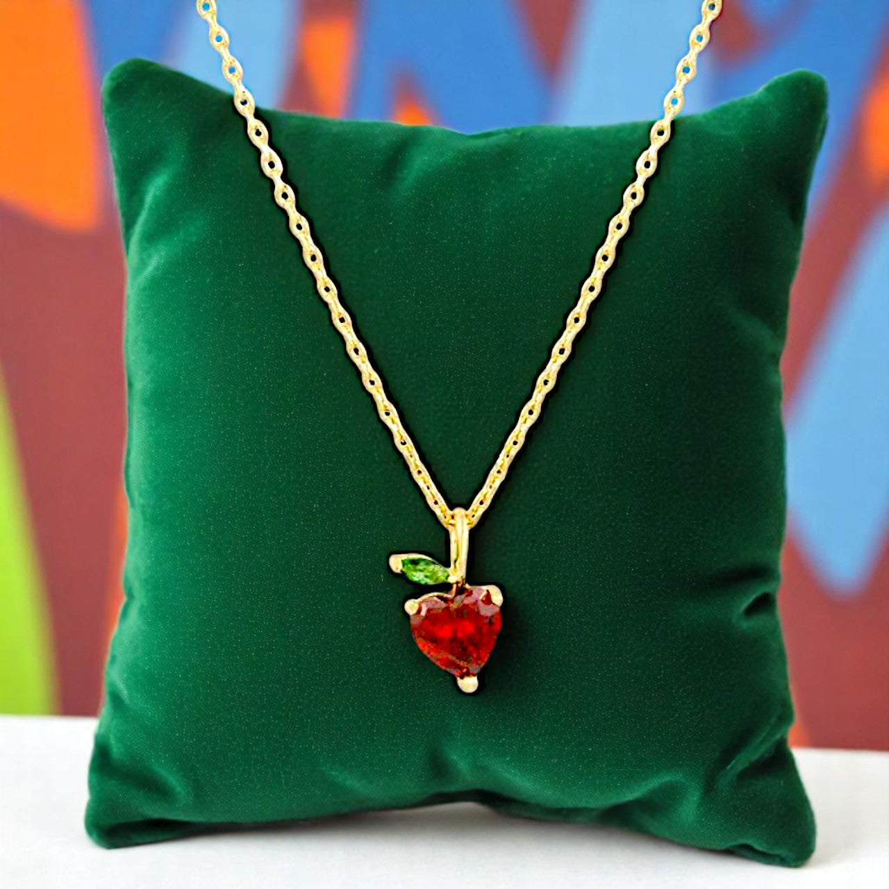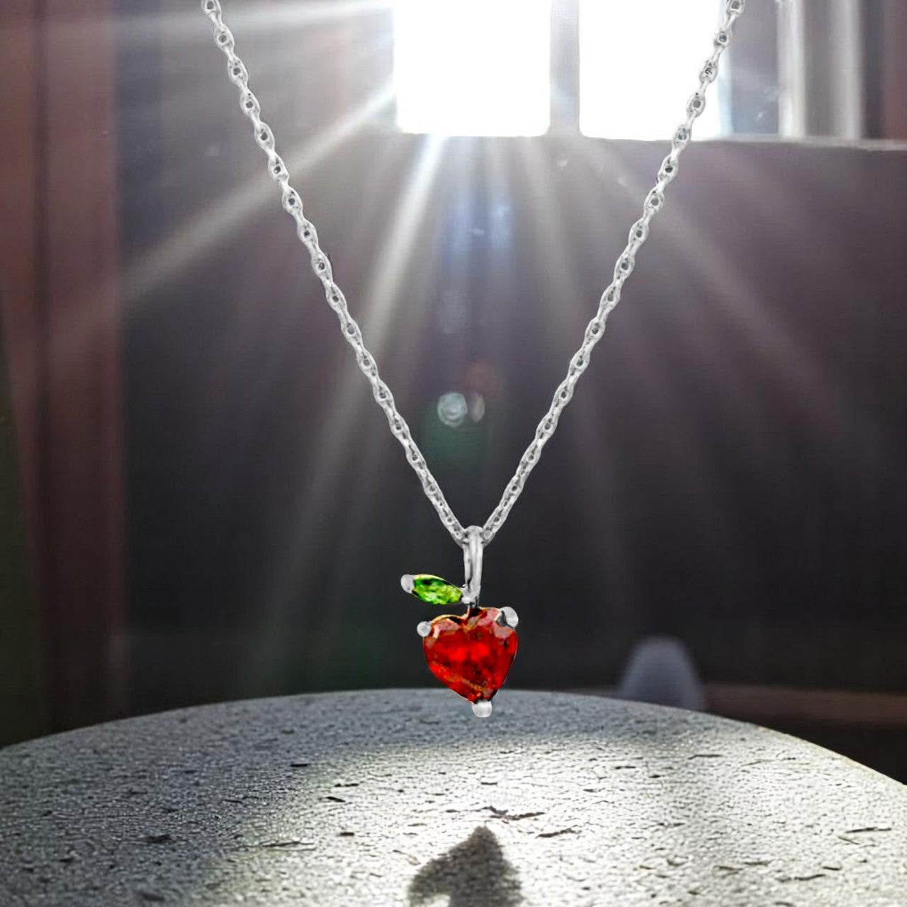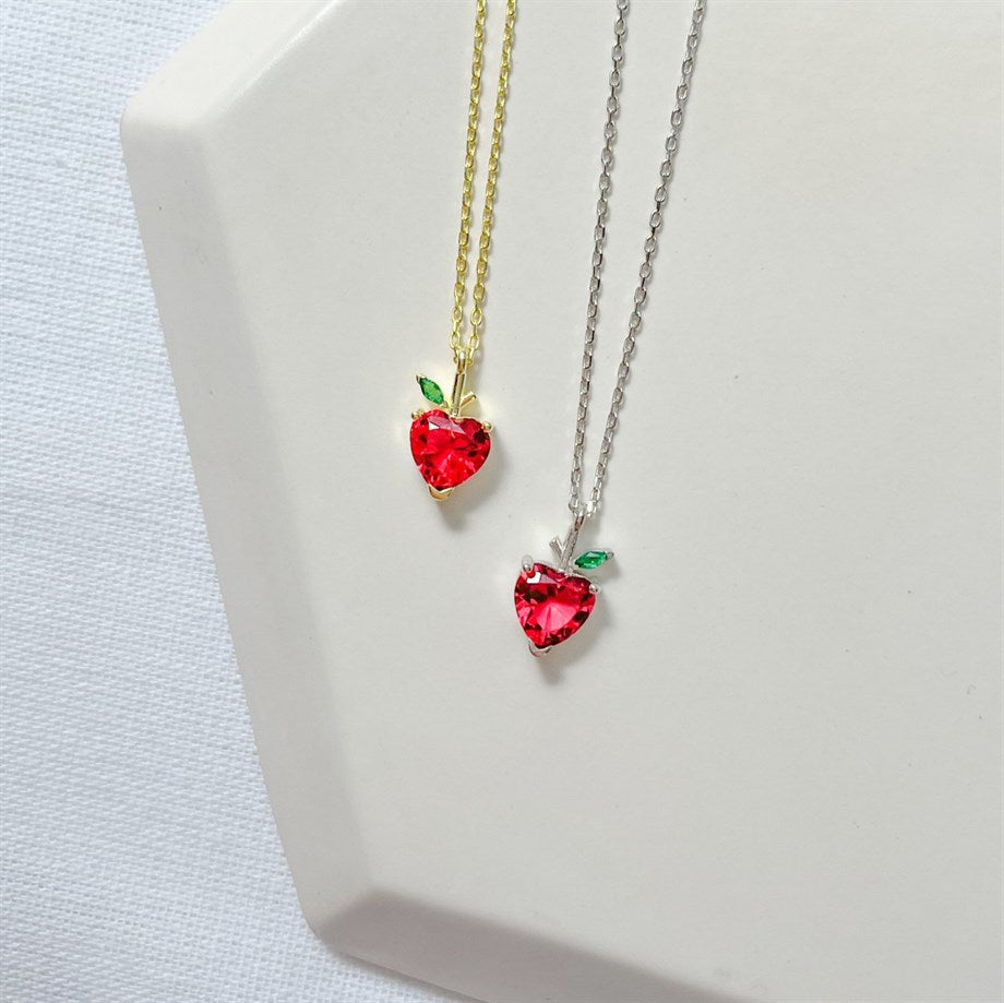 Red apple necklace. The metal is sterling silver. The size is 16"+2"extension.