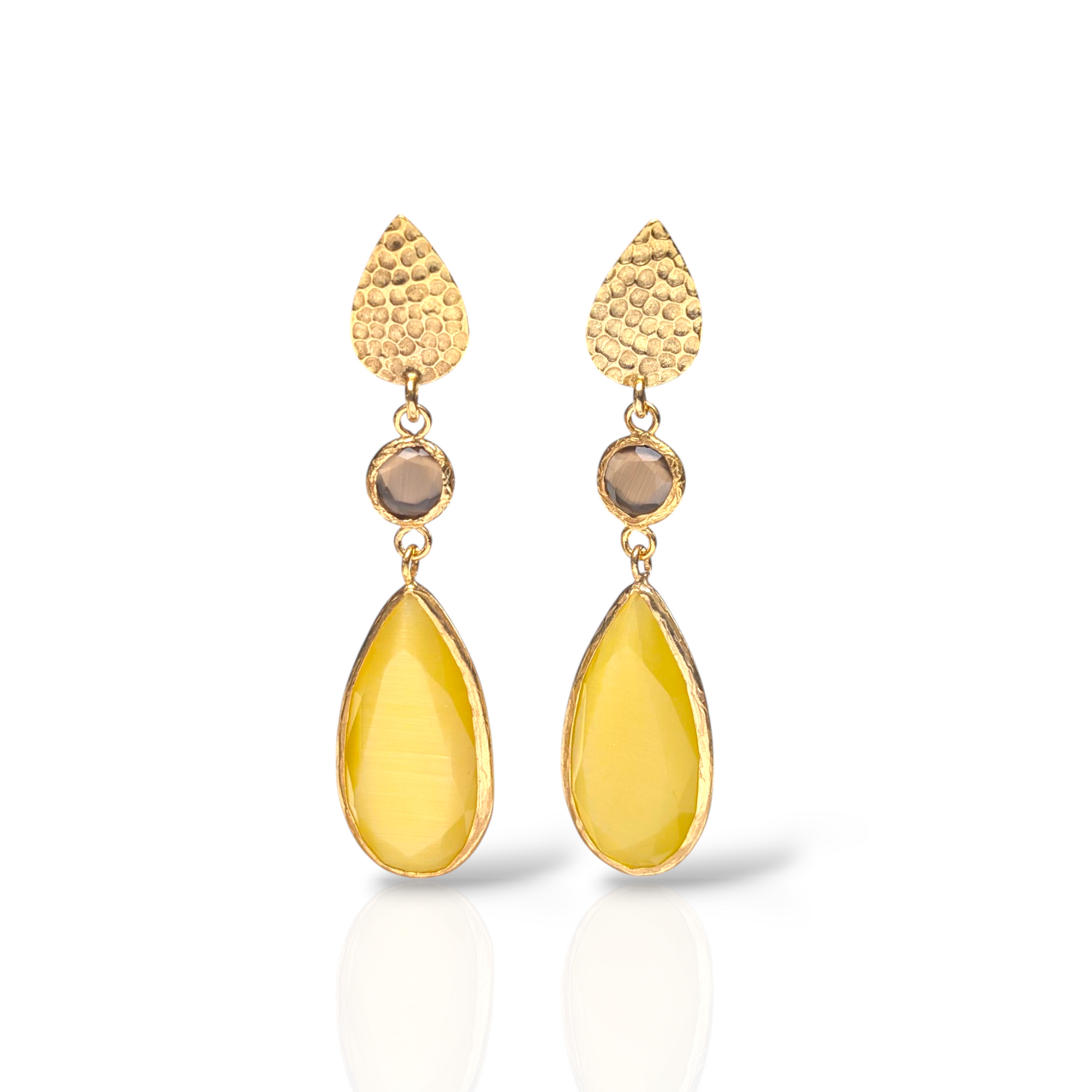 Cat Eye Double Stone Gold Earrings