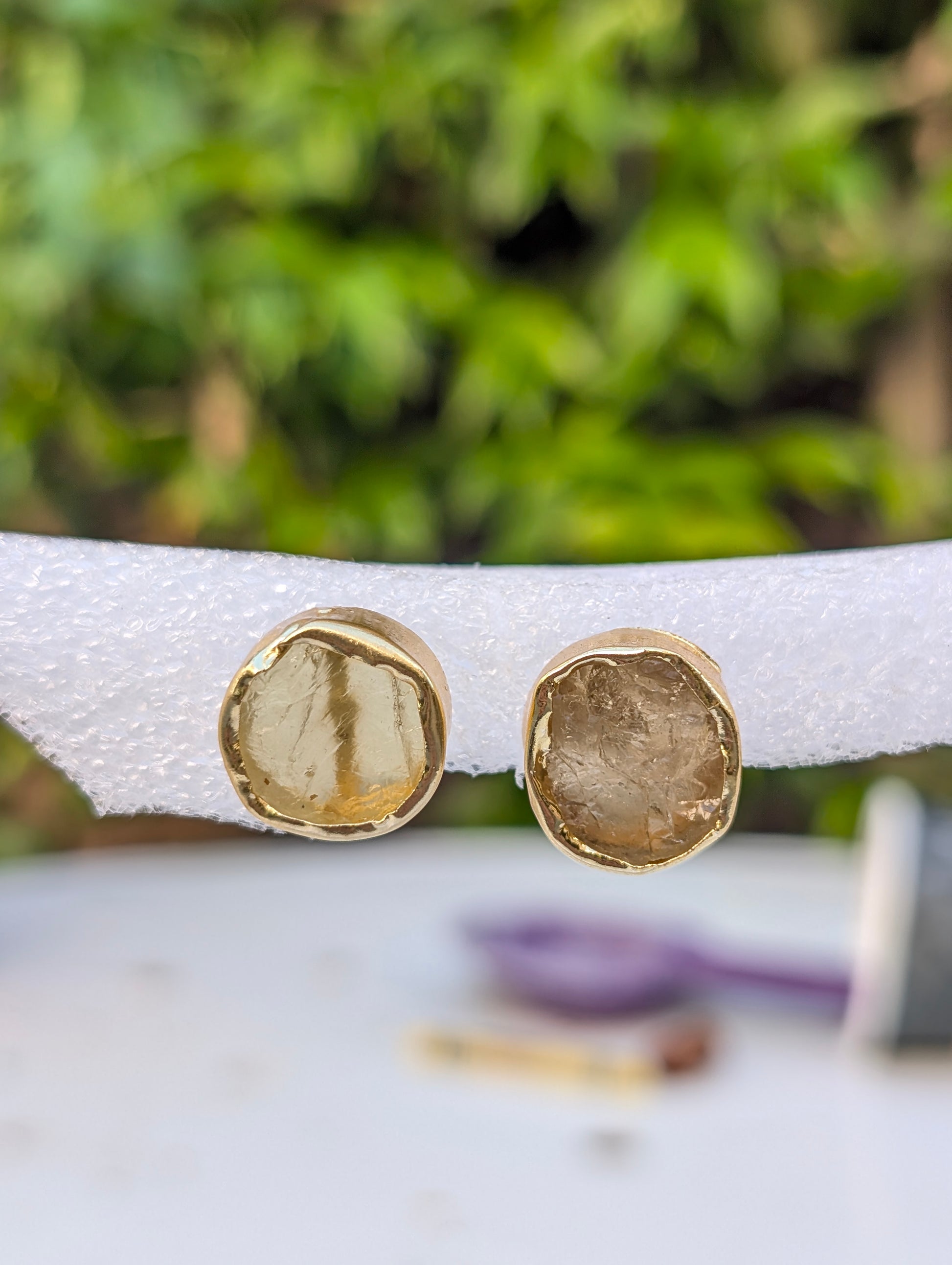 🌞 Genuine raw citrine stones – each pair is one-of-a-kind
