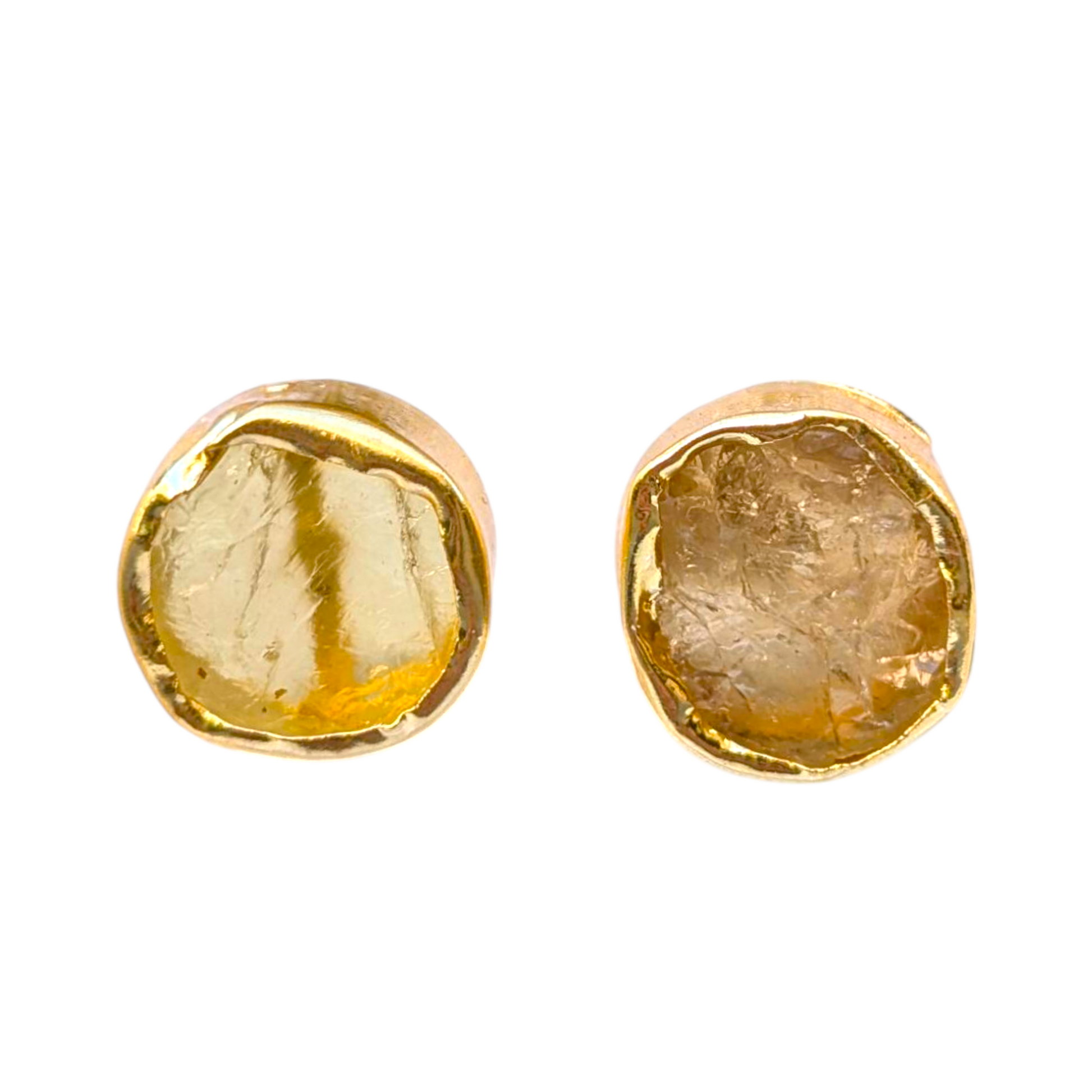 Rough Citrine Handmade Gold Stud Earrings