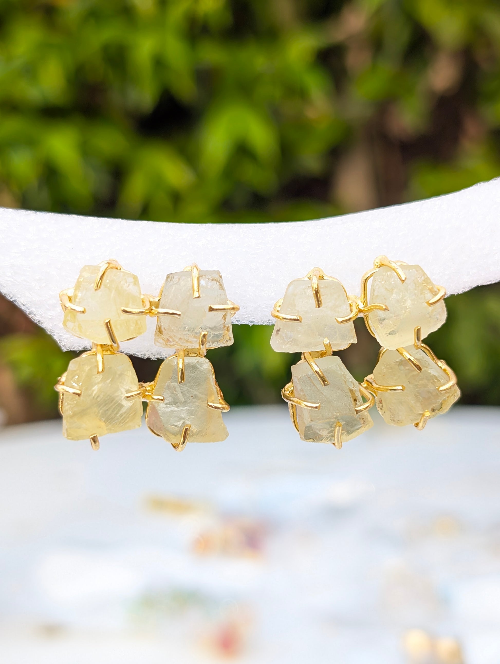Rough Citrine Stone Handmade Gold Stud Earrings