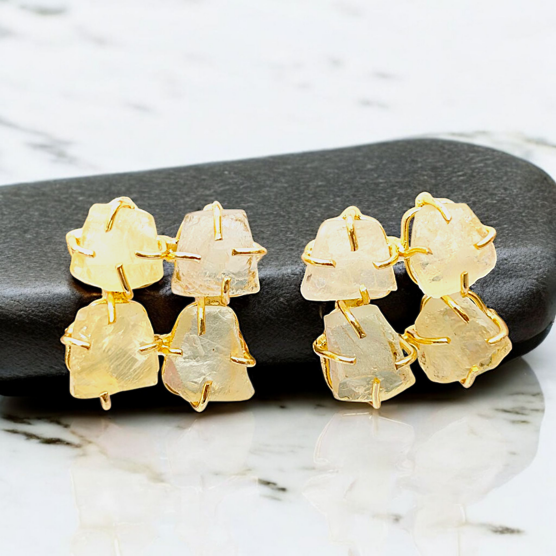 Bring a touch of sunshine to your style with these Rough Citrine Stone Handmade Gold Stud Earrings. Featuring raw, uncut citrine stones in their natural golden hue, each pair radiates warmth, positivity, and unique organic charm.