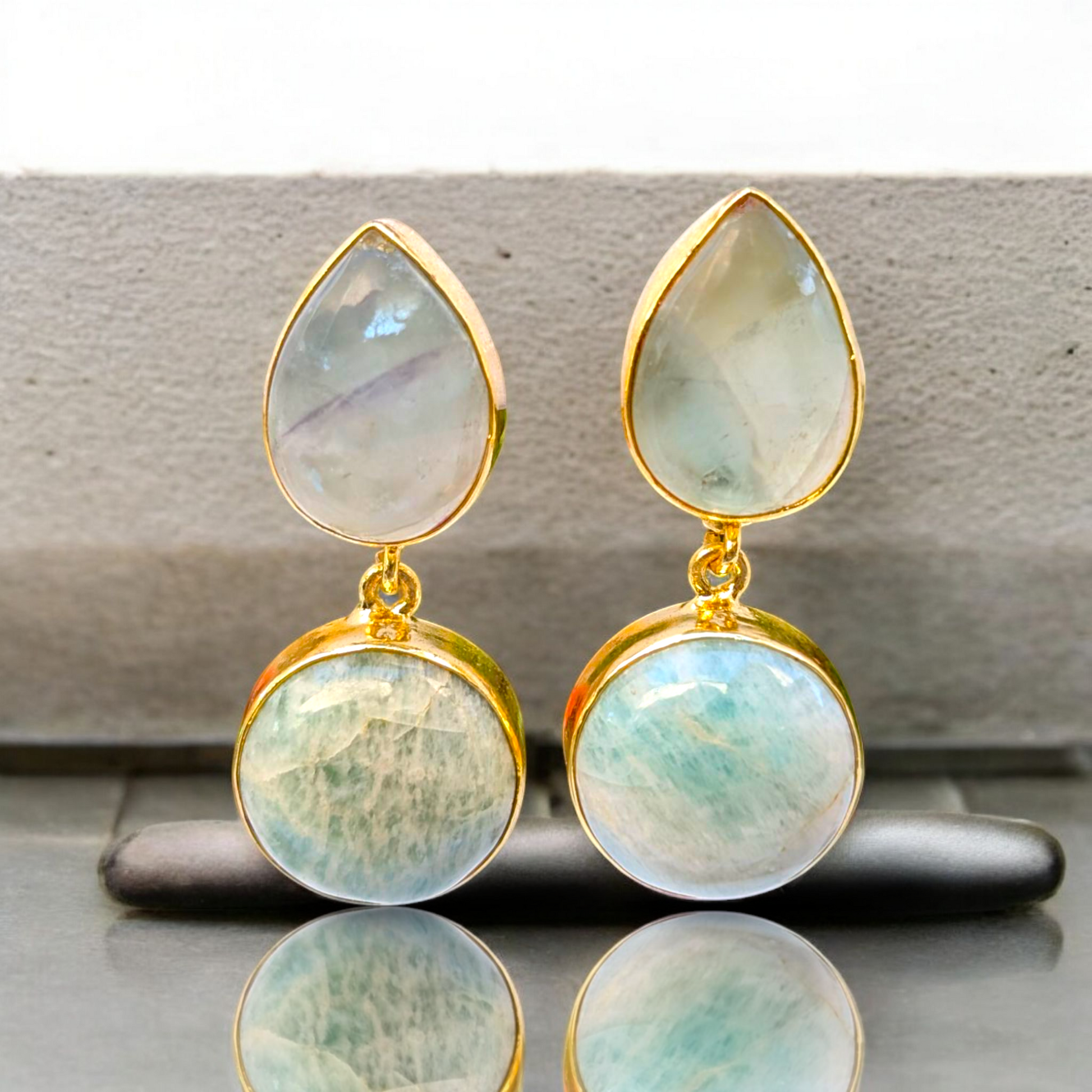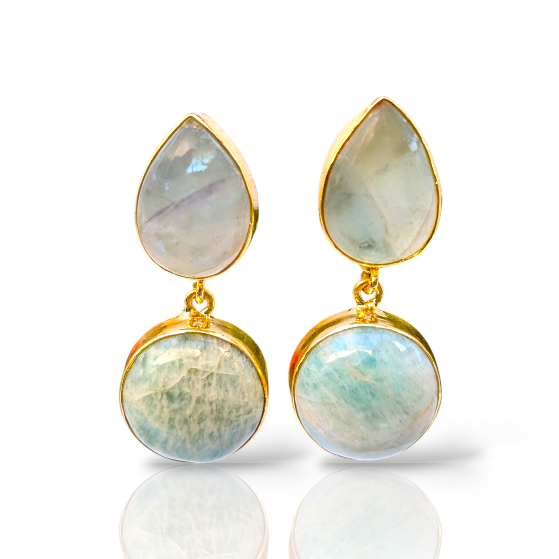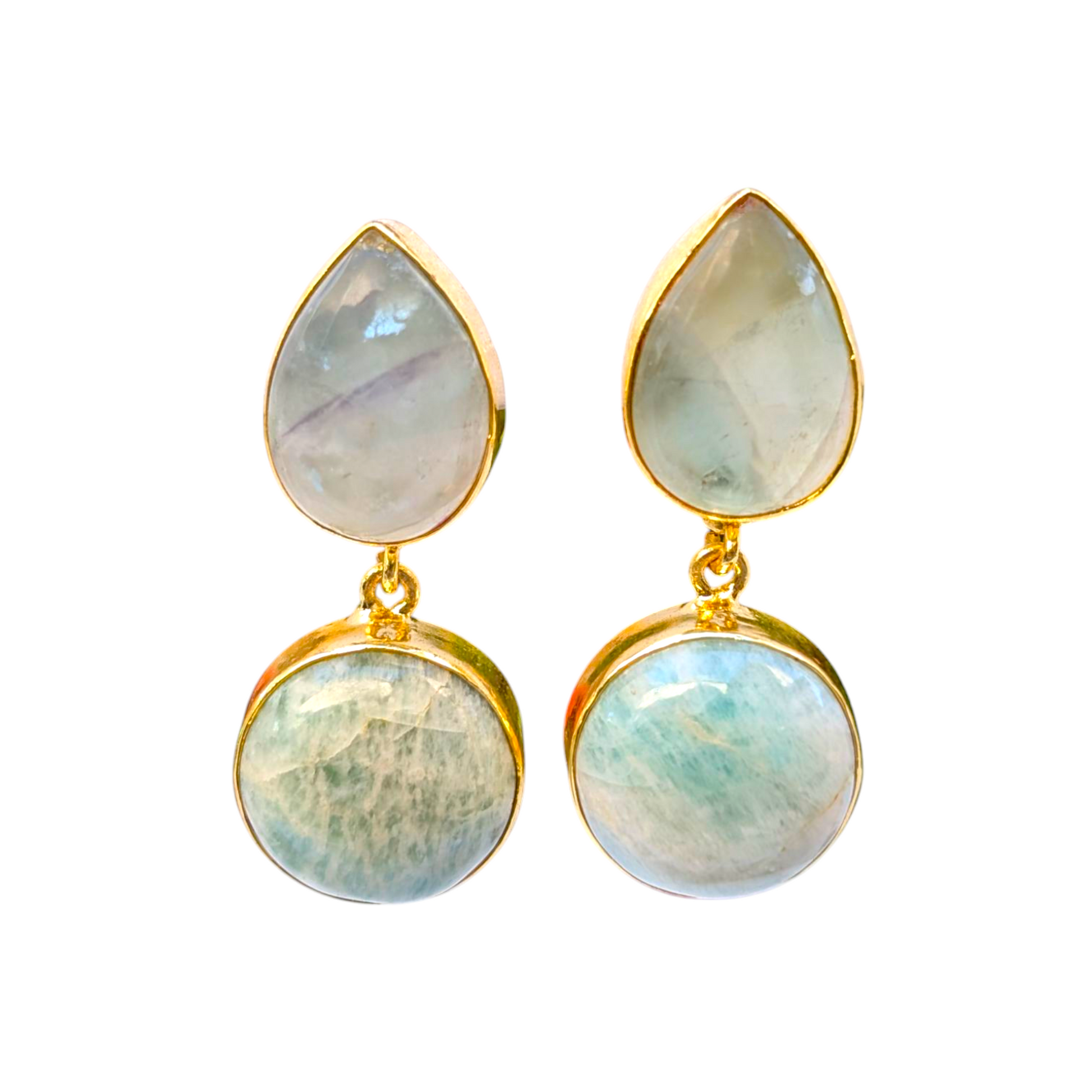 Channel calm, confidence, and clarity with these serene Amazonite Handmade Gold Earrings. Featuring beautifully raw amazonite stones in soft aqua tones, each pair is uniquely crafted to highlight the natural beauty and soothing energy of this beloved gemstone.