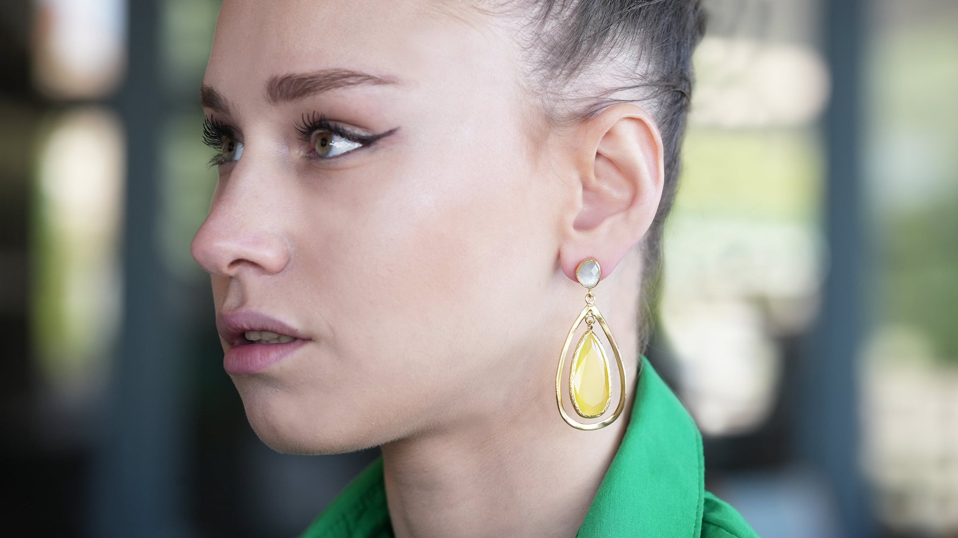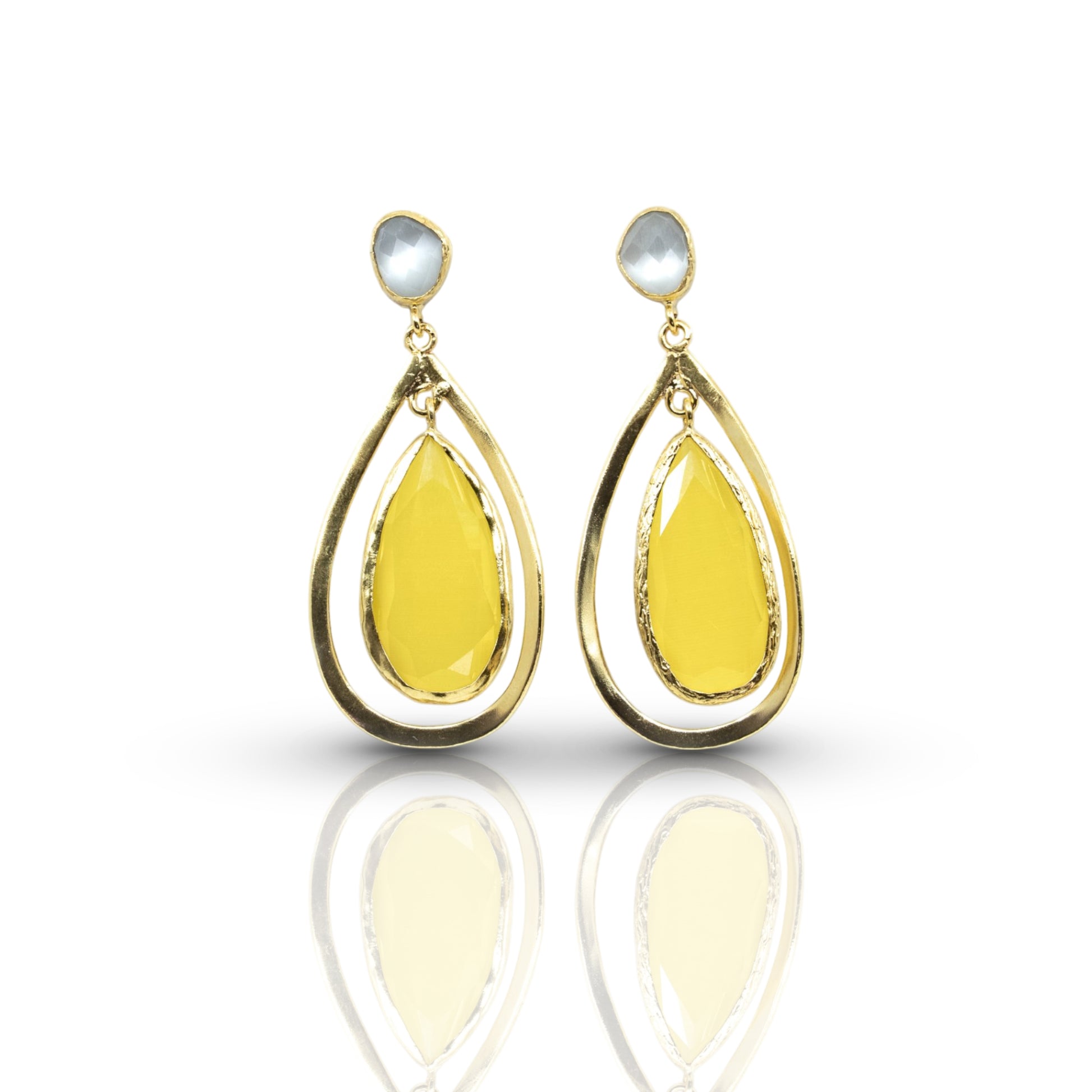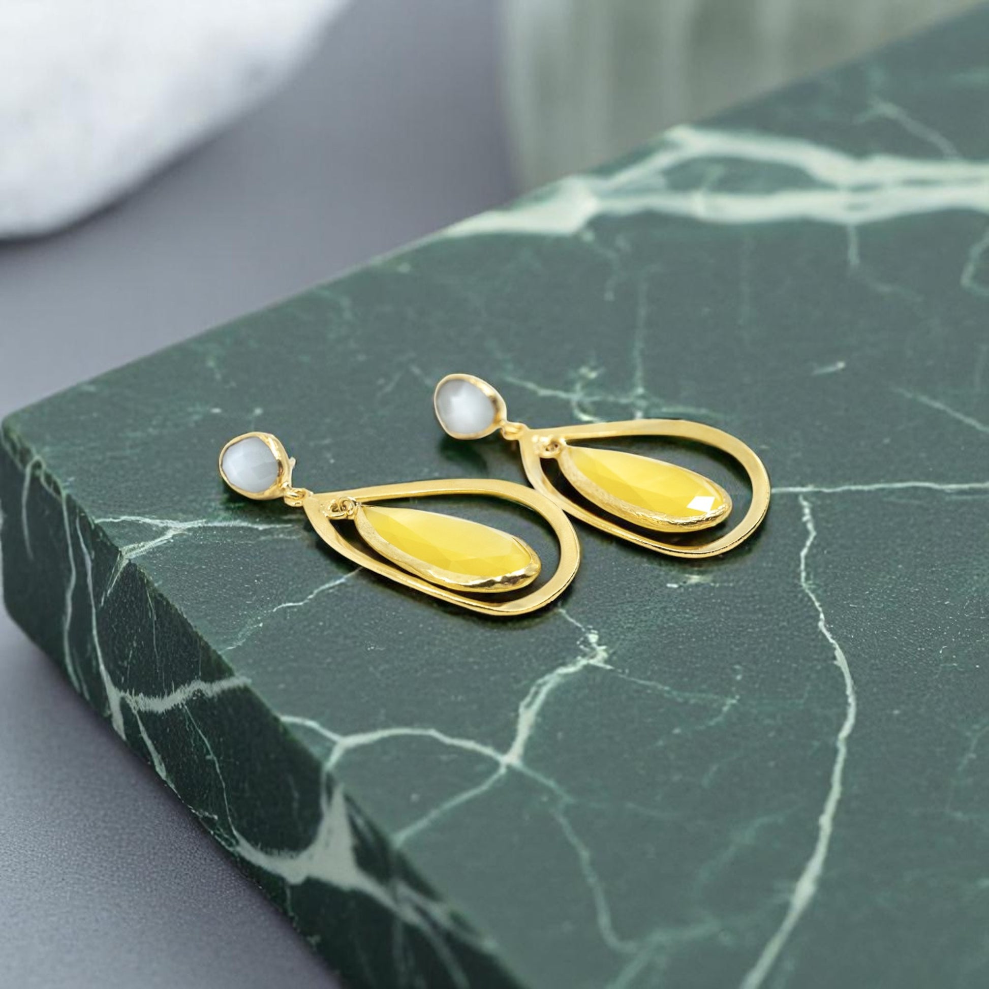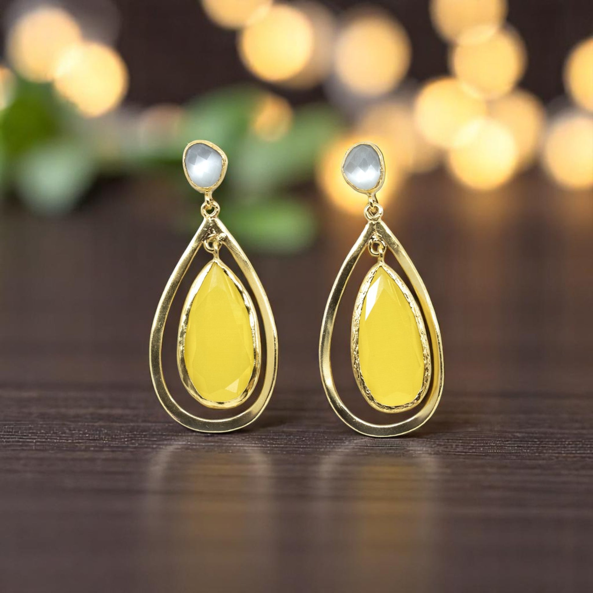 Beautiful Dangling Earring teardrop shaped with yellow stone