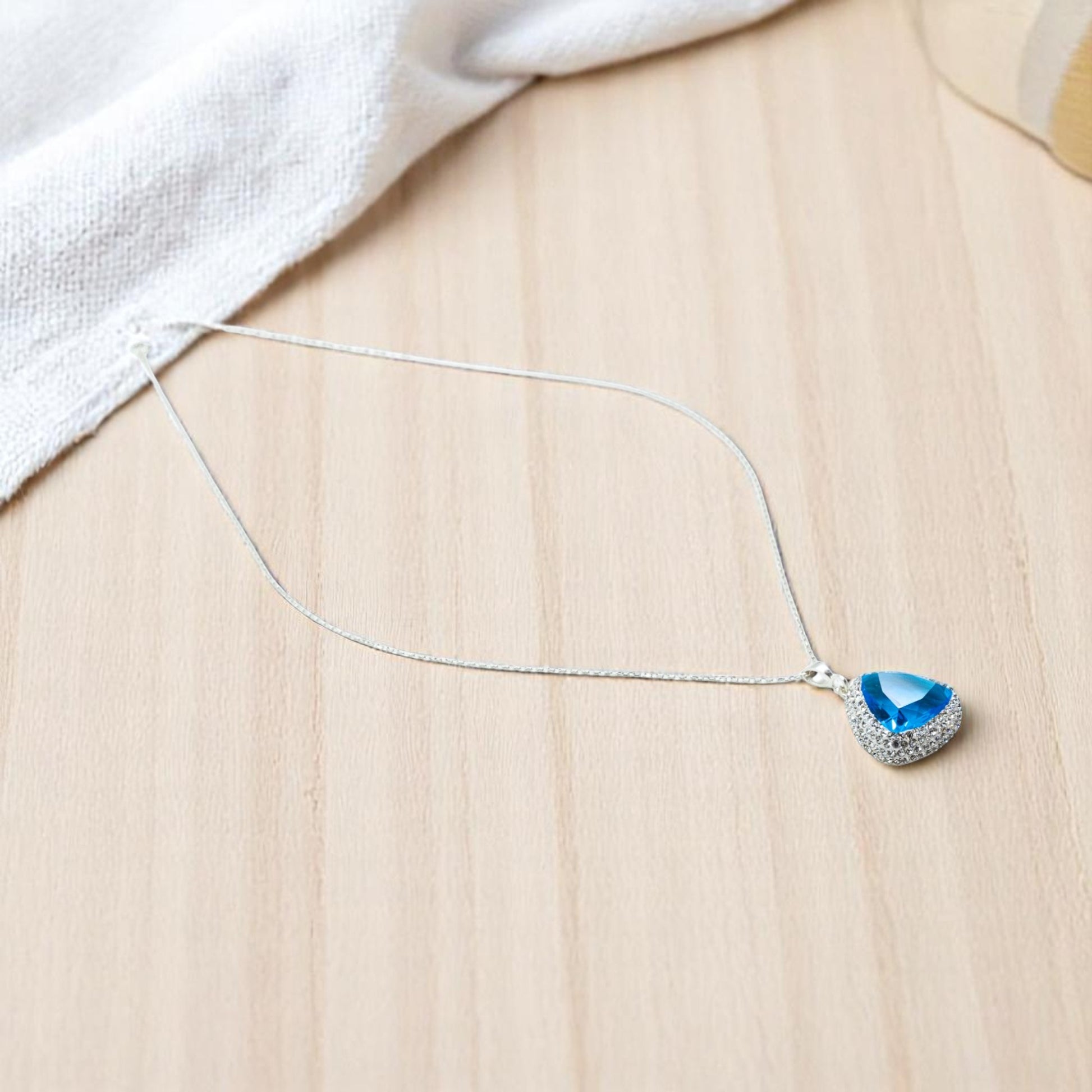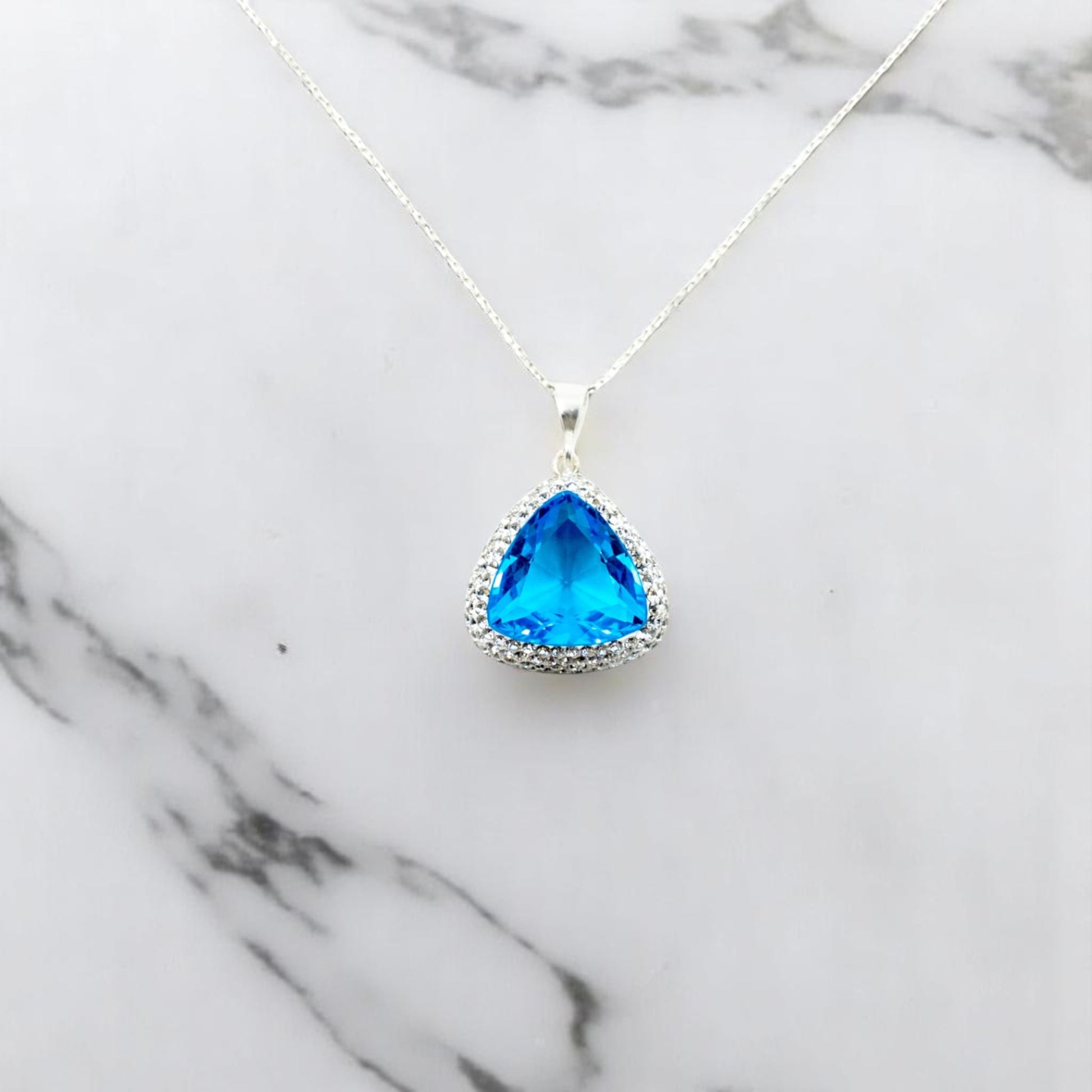 Gorgeous Triangle Shape Necklace with Baby Blue Stone silver chain.