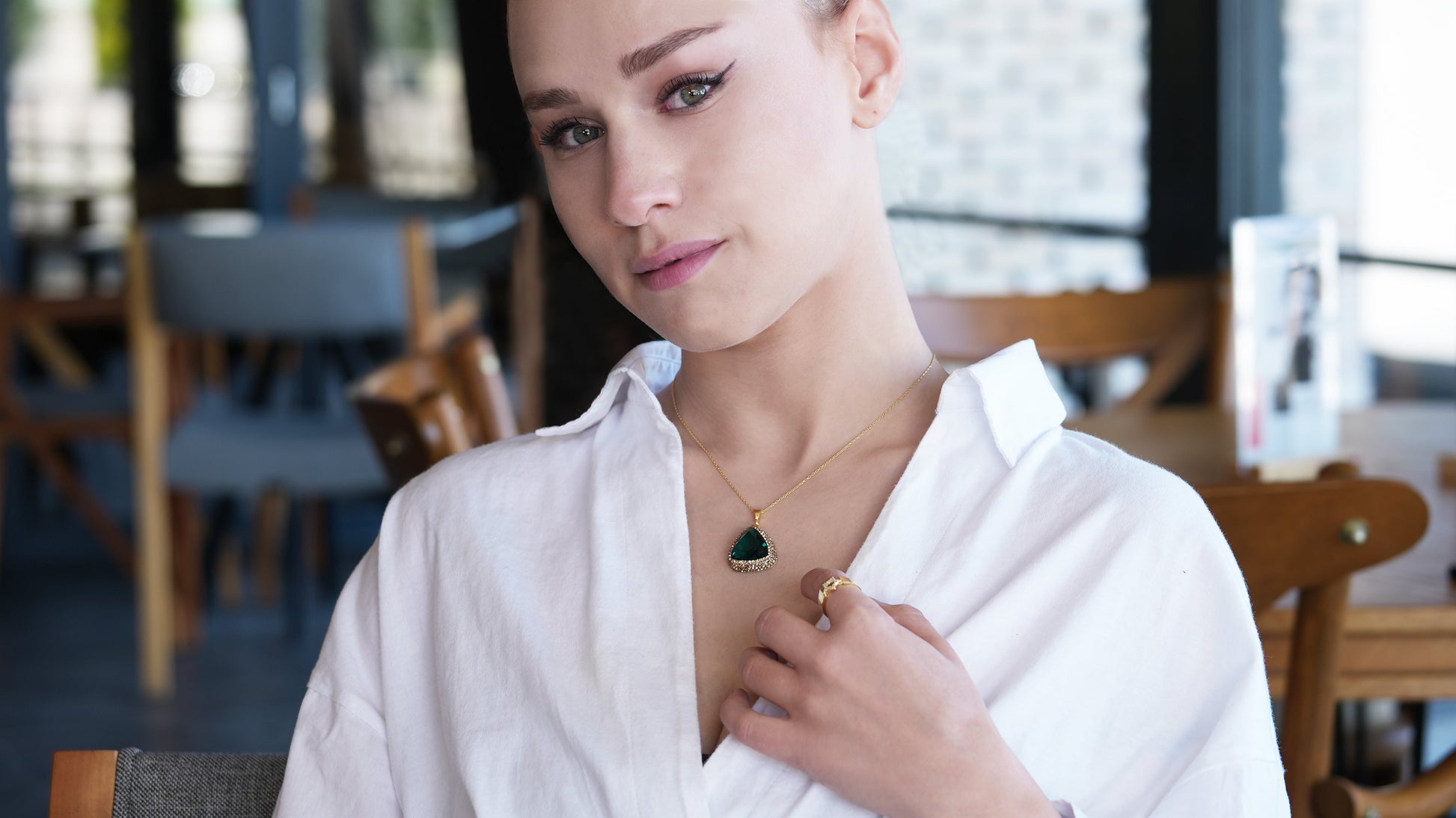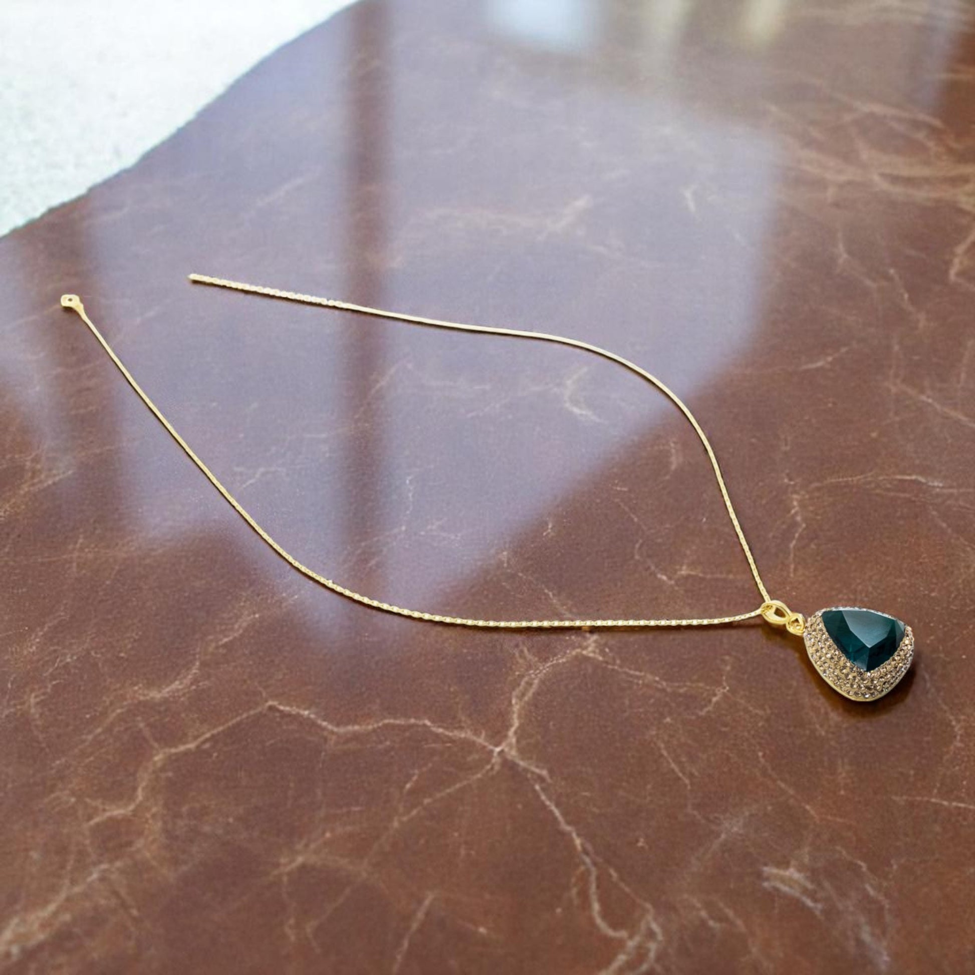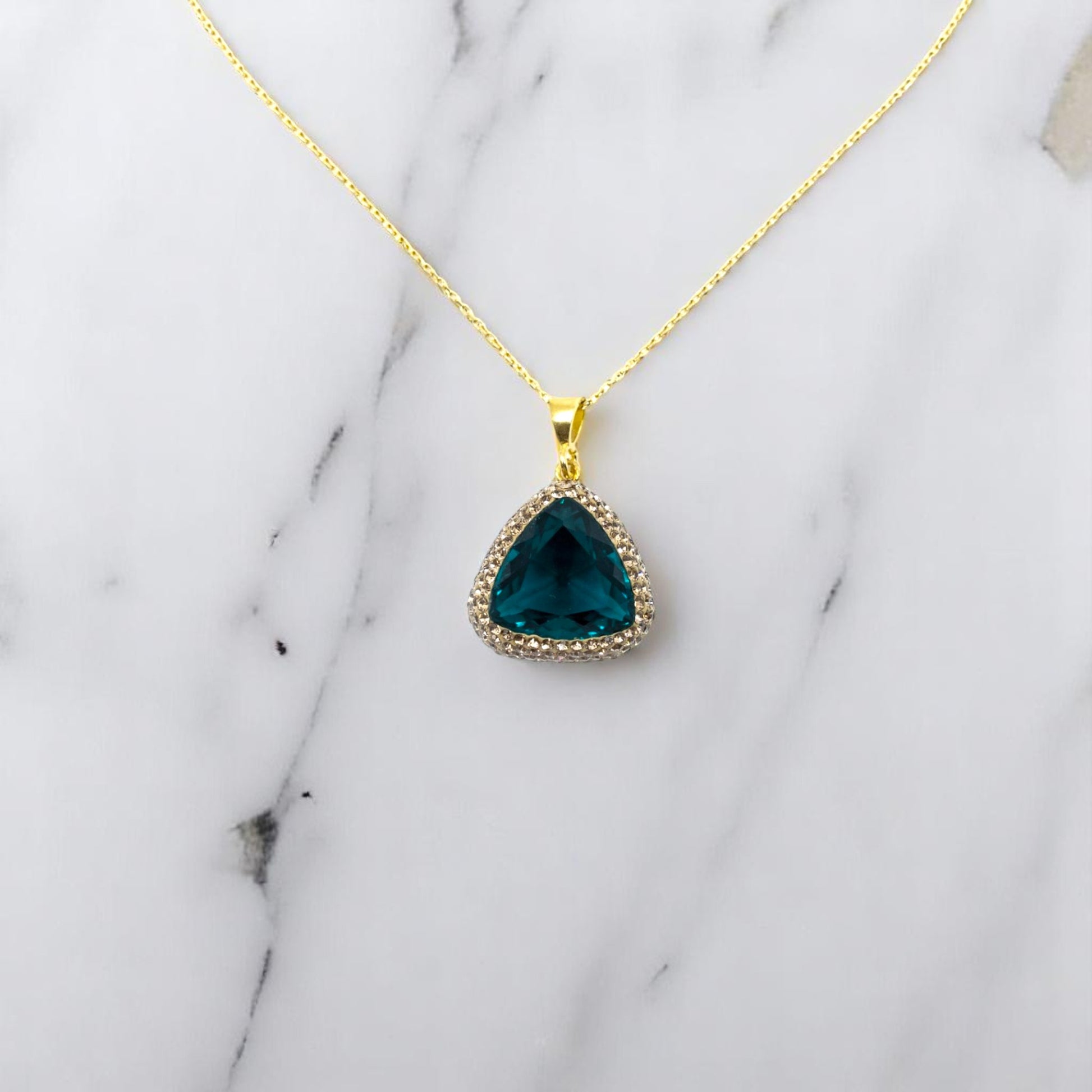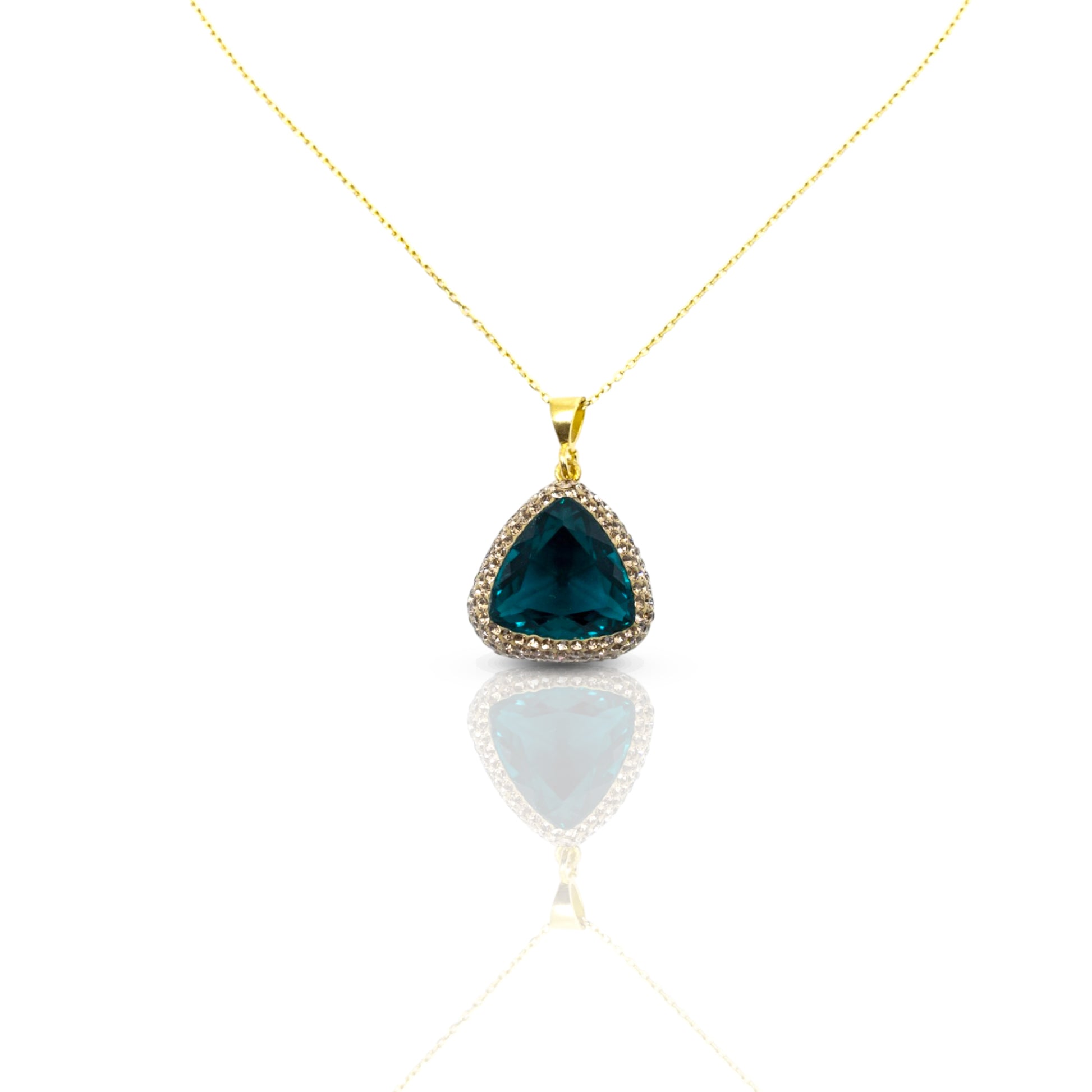 Triangle Pendant Necklace Navy Blue Stone
