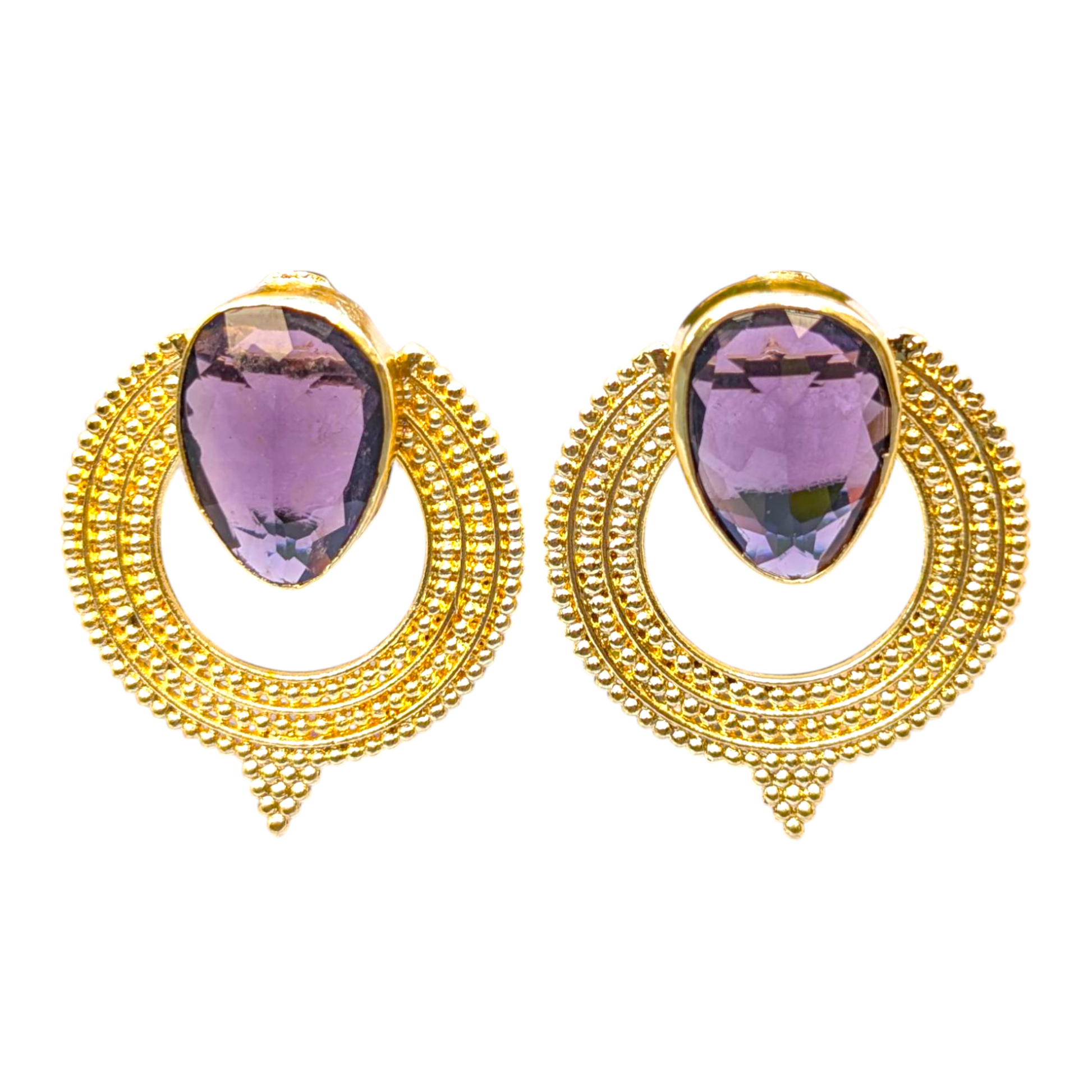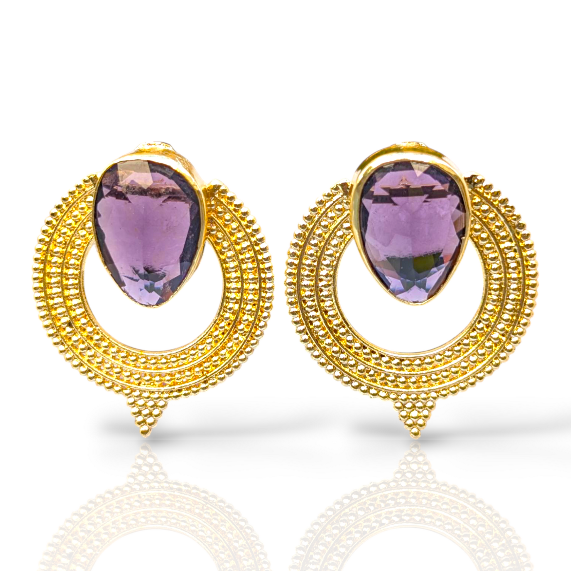 Add a subtle pop of color to your everyday style with these charming Purple CZ Handmade Gold Stud Earrings. Featuring sparkling cubic zirconia in a rich amethyst hue, these studs bring just the right amount of elegance and personality.