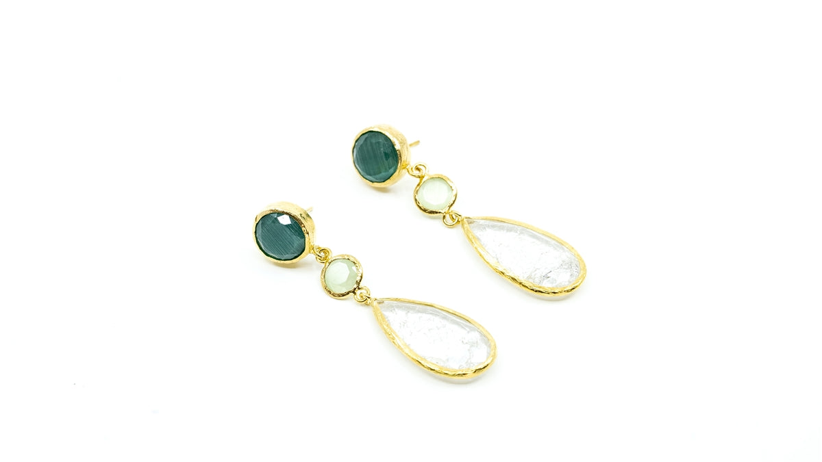 18k gold plated over brass and handmade earrings. The stones are cateye and CZ.