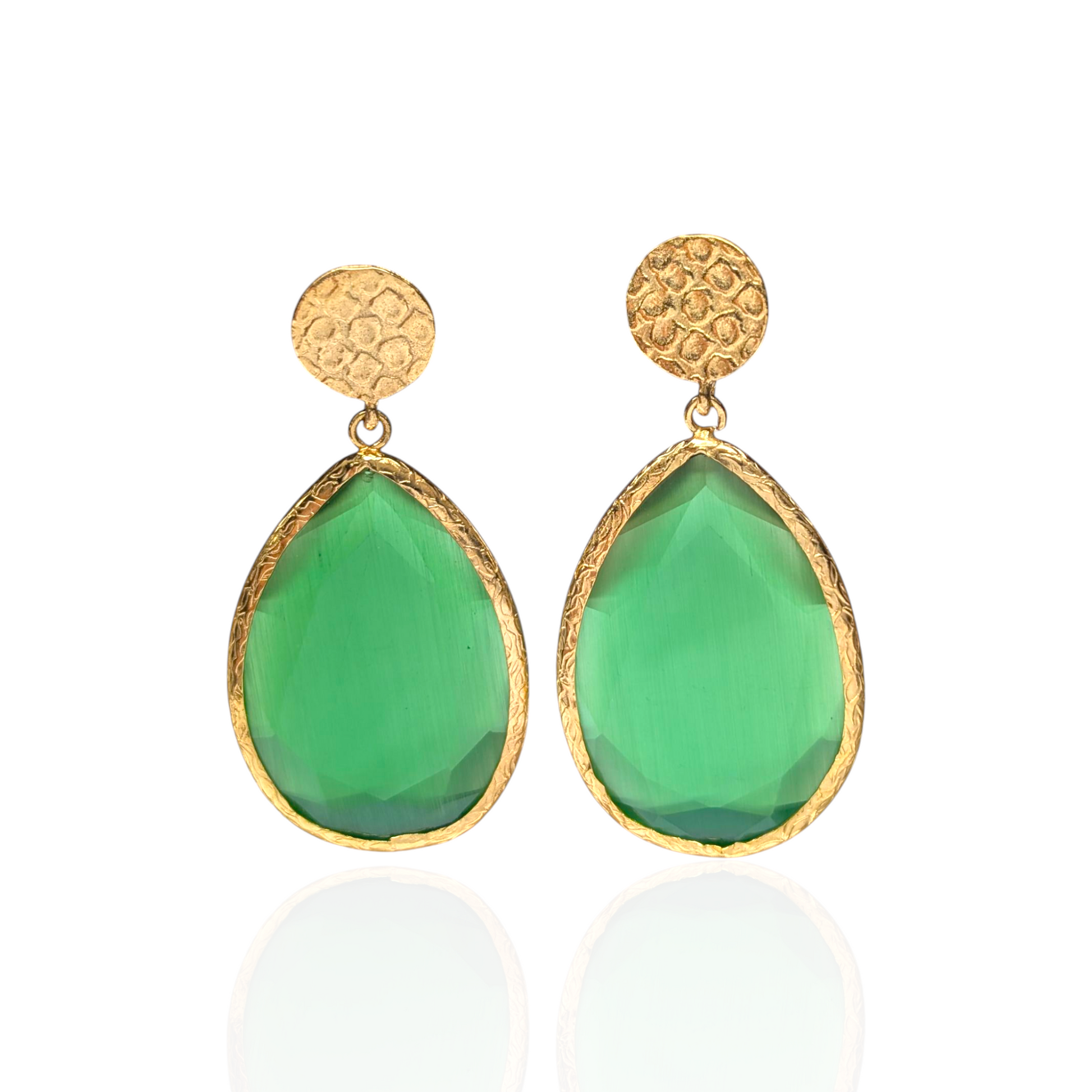Handmade in Turkey • Gold-plated brass setting • Natural cat eye stones