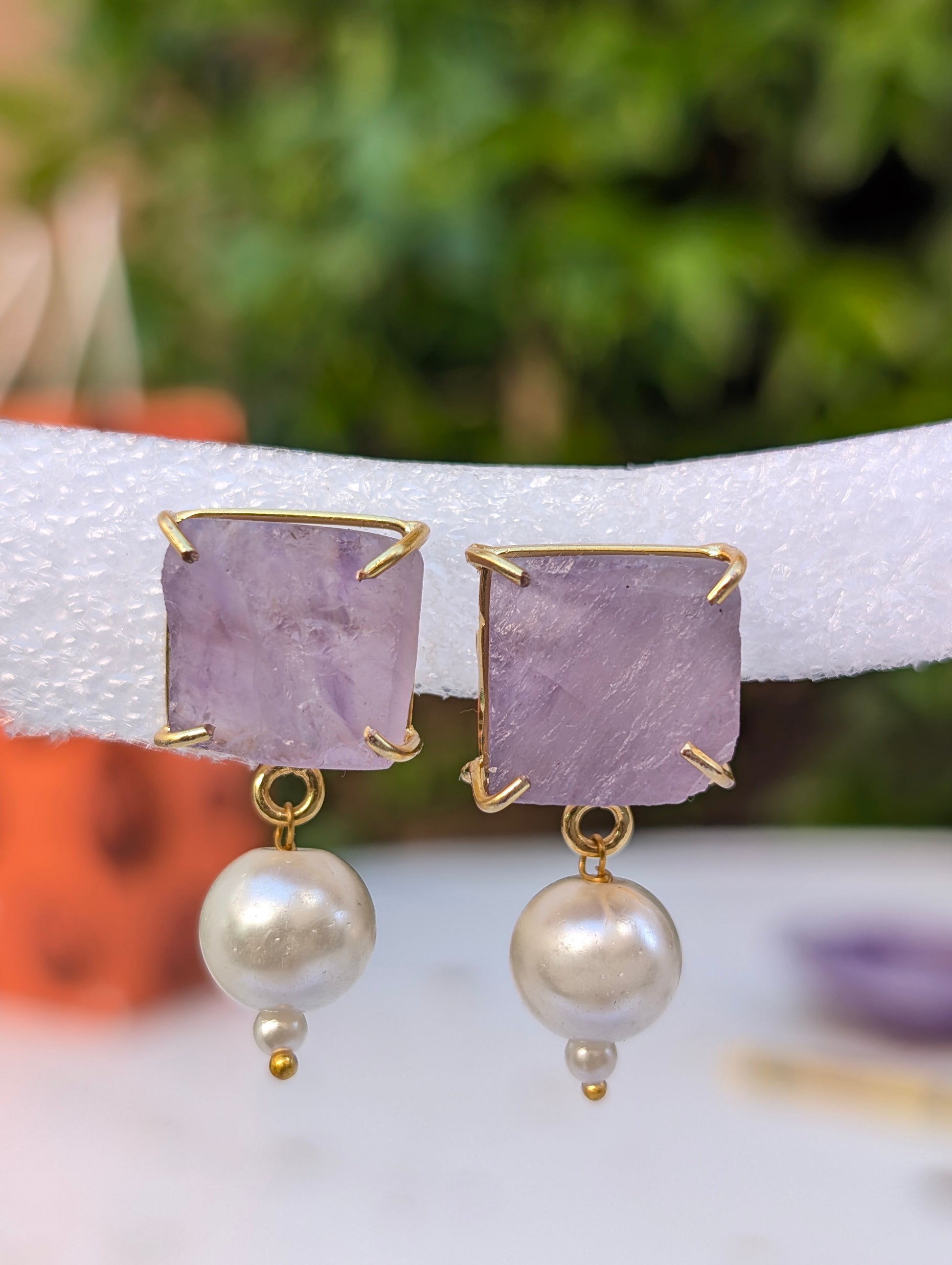 π Natural rough amethyst stones paired with real freshwater pearls