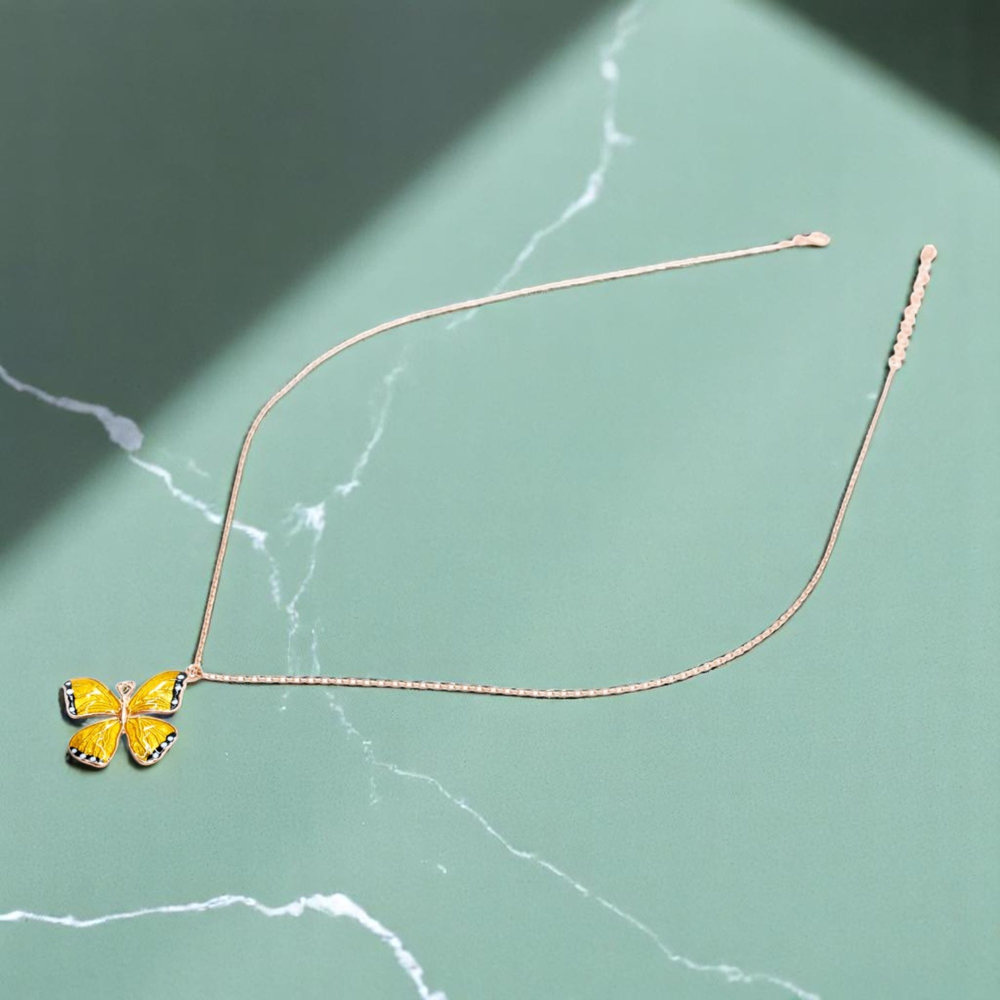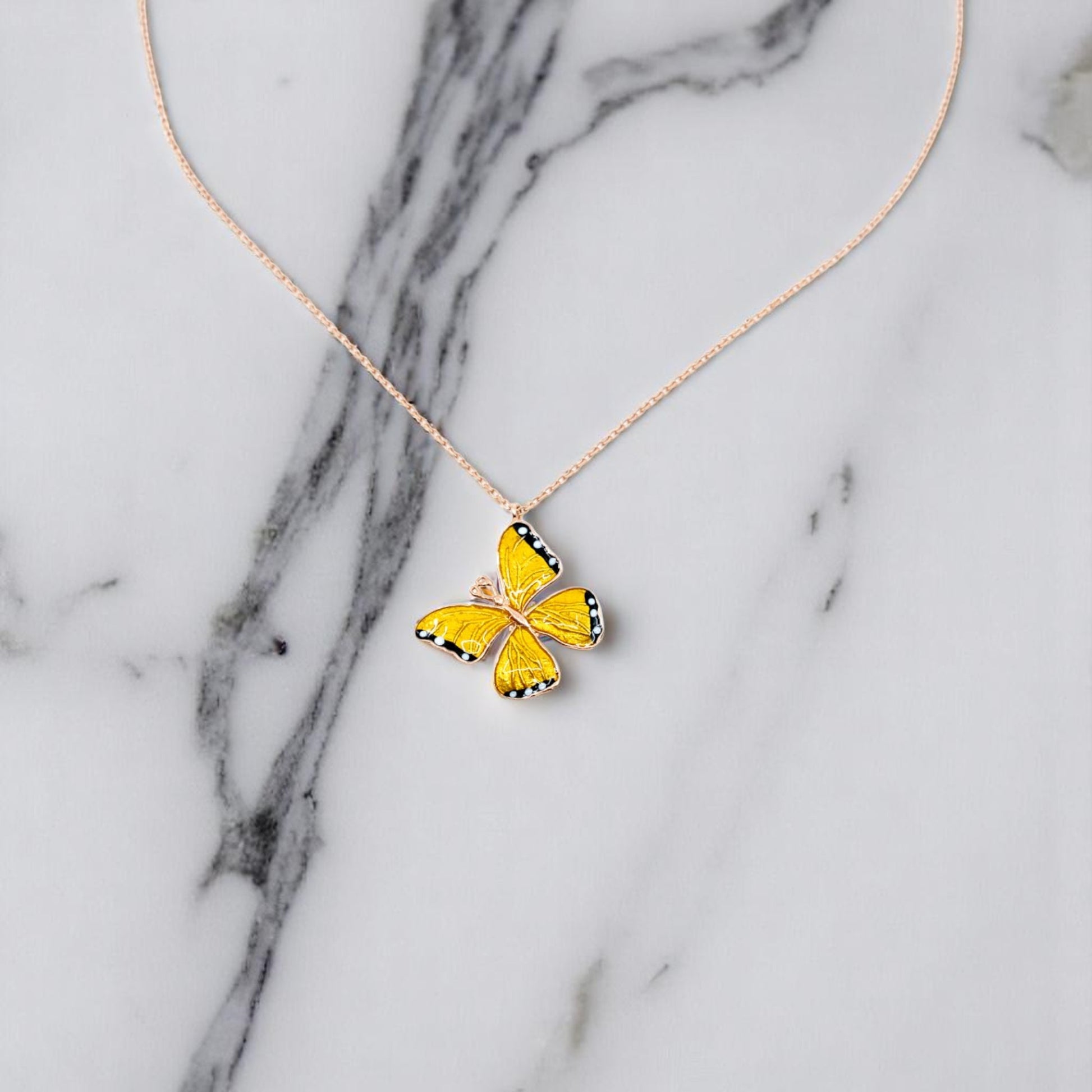 Yellow Butterfly Necklace in Sterling Silver with Vitreous Enamel