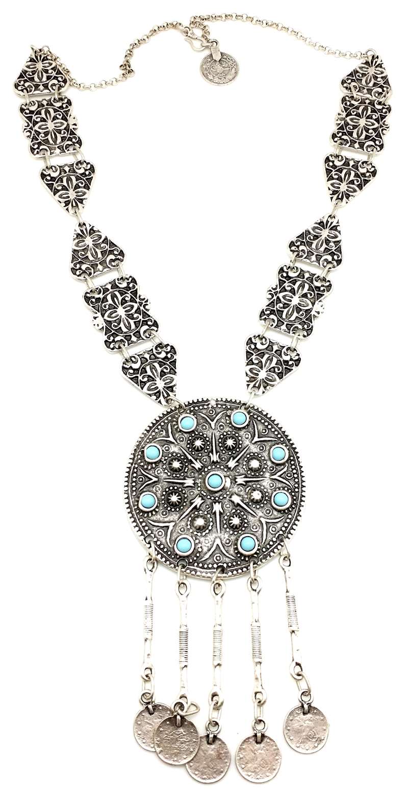 It is silver plated over Zinc. It "doesn't" change color. Led and nicel free.
